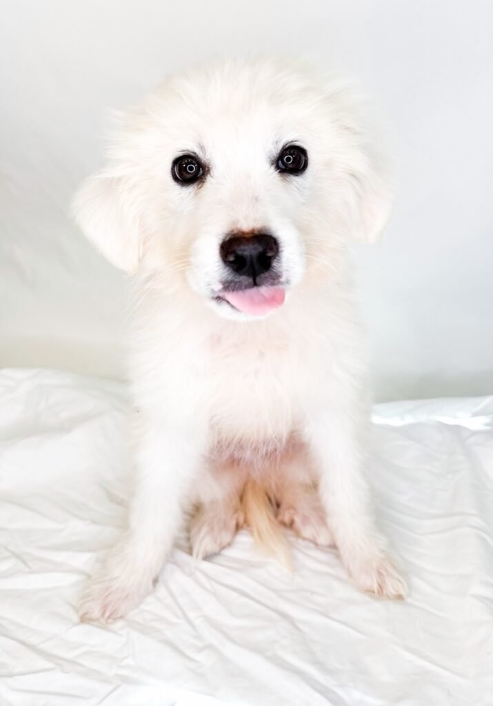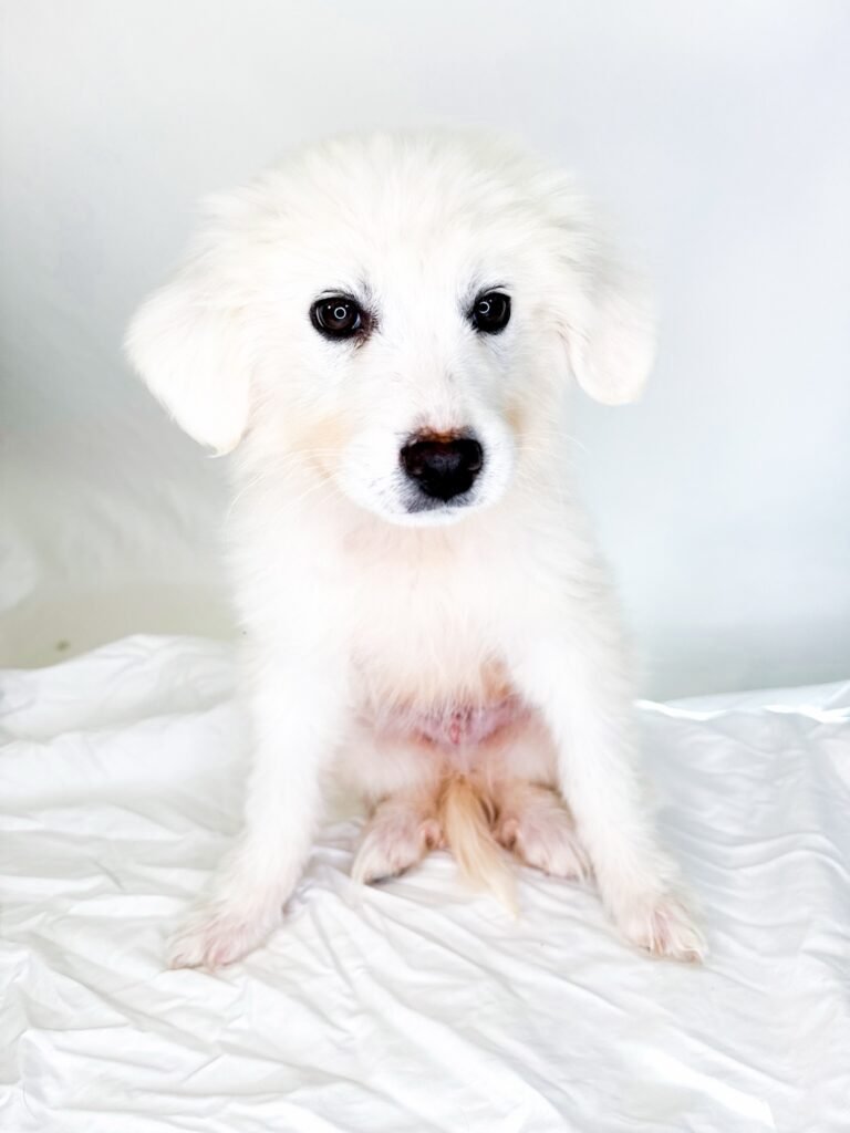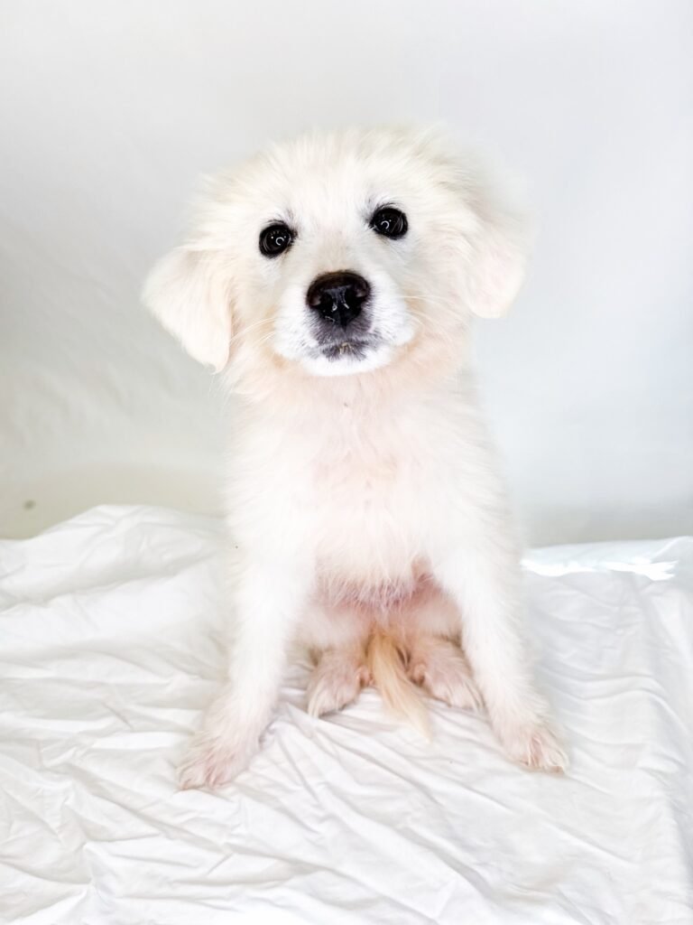 Snow is the only boy in the litter and a total sweetheart. After settling in, he blossomed into a happy, playful, and gentle little guy who no longer hides and truly enjoys being part of the action. Often referred to as “Mr. Snow,” he has the best little gentleman personality and an adorable freckled nose that perfectly matches his charm.
