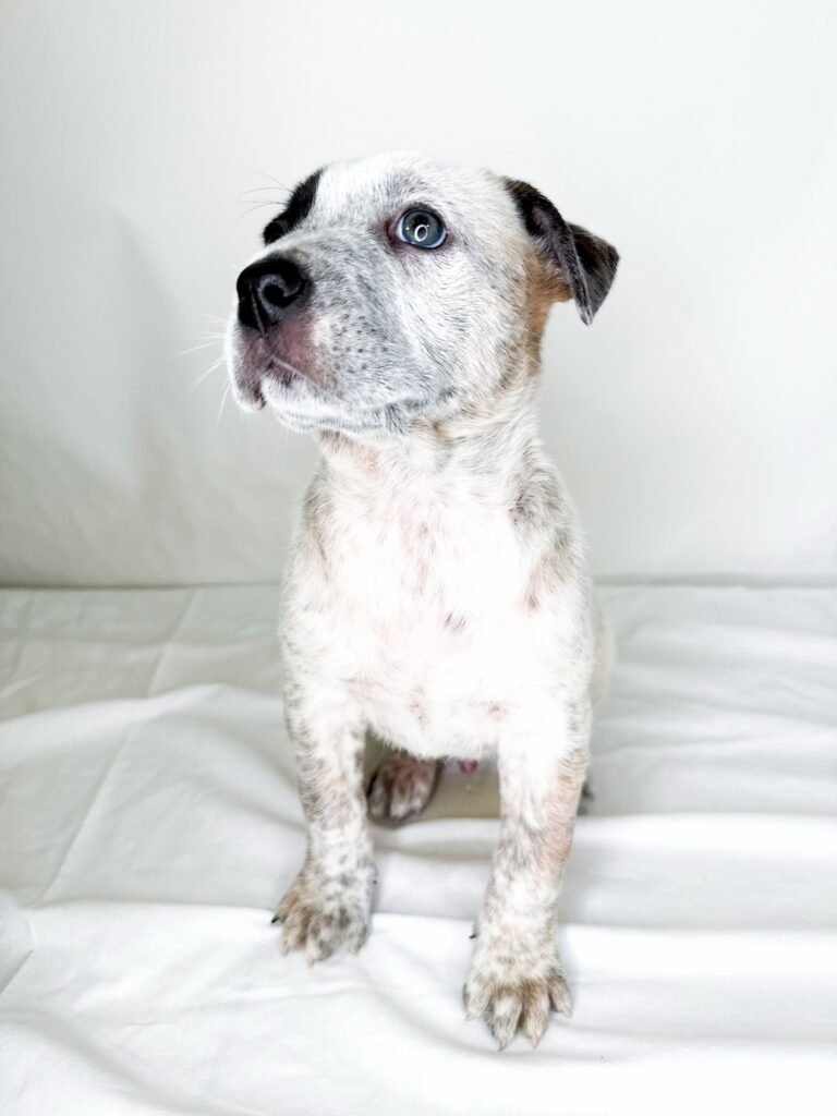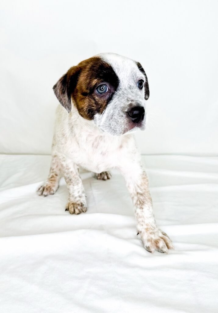 Hoops has a big heart and a big zest for life. He loves to play and is adventurous but can often be found sitting at his human’s feet, just checking in before he’s off to play again. Hoops is great with people and other dogs. He enjoys playing with toys and bounding around the yard. When he’s not playing, he sleeps quietly in a puppy pen with his siblings. He shows his heeler side and likes to grab the heel of his human’s pants, so small kids may not be a good match for him while he’s in his puppy phase. He is very young so he hasn’t yet begun potty training. Hoops has so much love to give and is looking for a family to soak it all up!