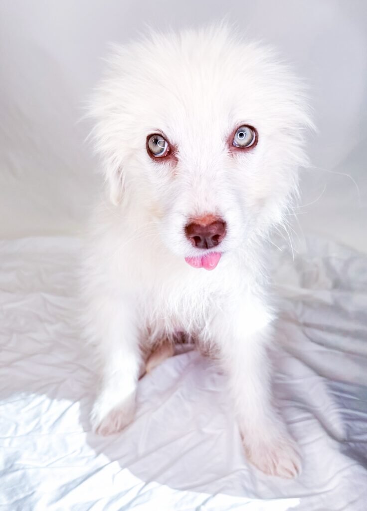 She has settled in extremely well with the foster’s son and older dogs and is curious about the cat, even if the feeling isn’t quite mutual yet. She is still working on potty training and making steady progress every day. Frost would make a wonderful family dog, but her calm, gentle nature would also allow her to thrive in a quieter home with just one companion. No matter the setting, she will be an incredible addition to her furever home, and with looks like hers, don’t be surprised if she ends up being the next canine star.