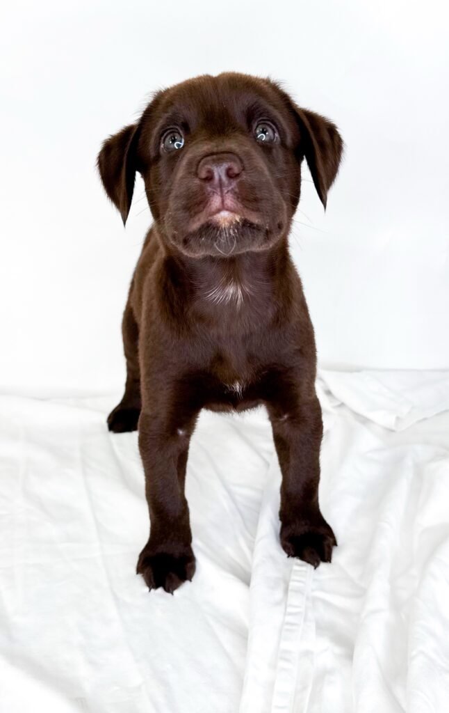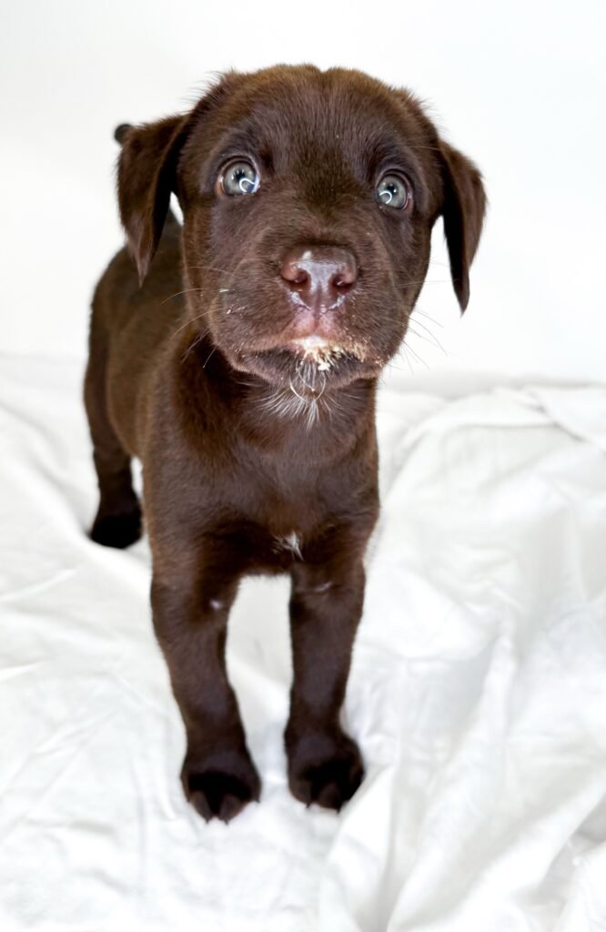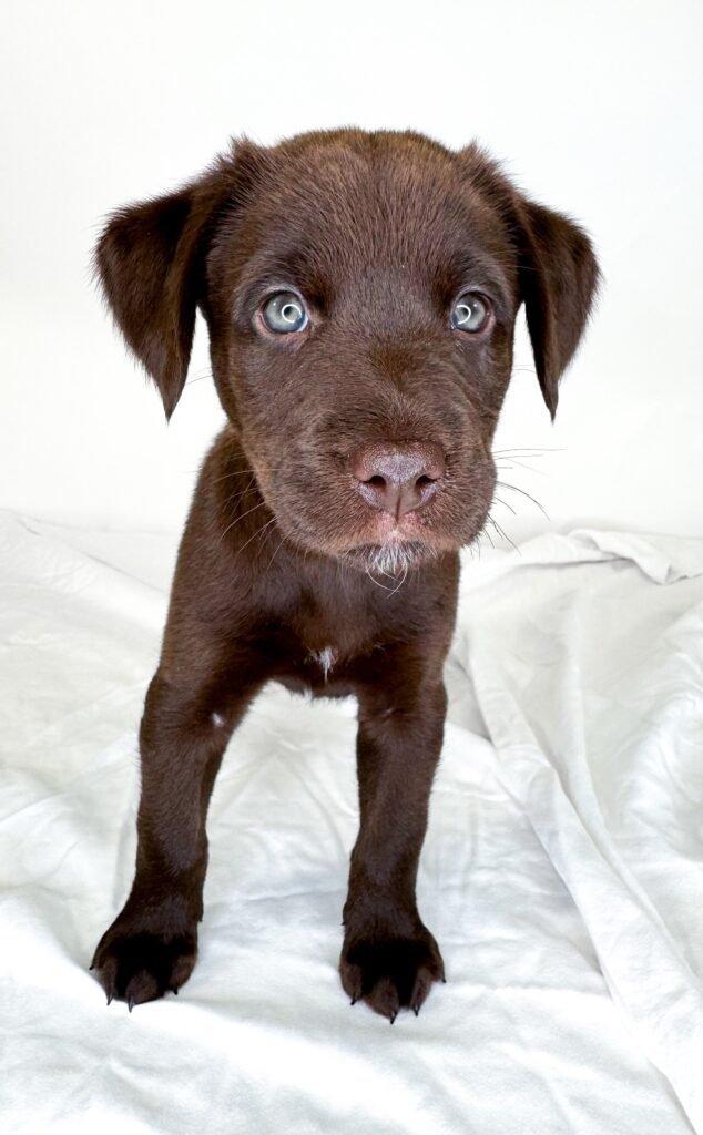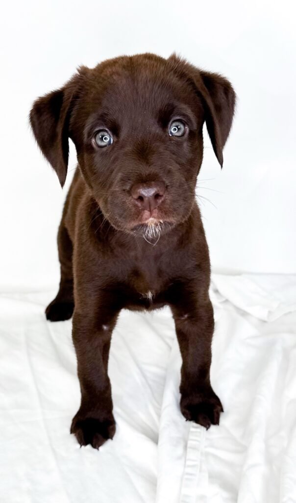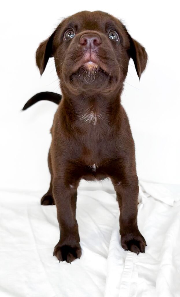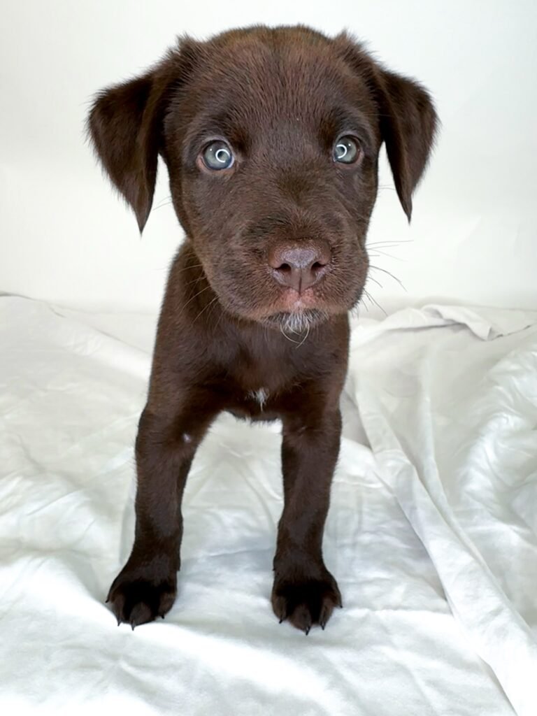 Gamma is a vocal, chocolate Lab mix who knows what she wants and isn’t shy about letting you know (hint: it’s usually attention)!