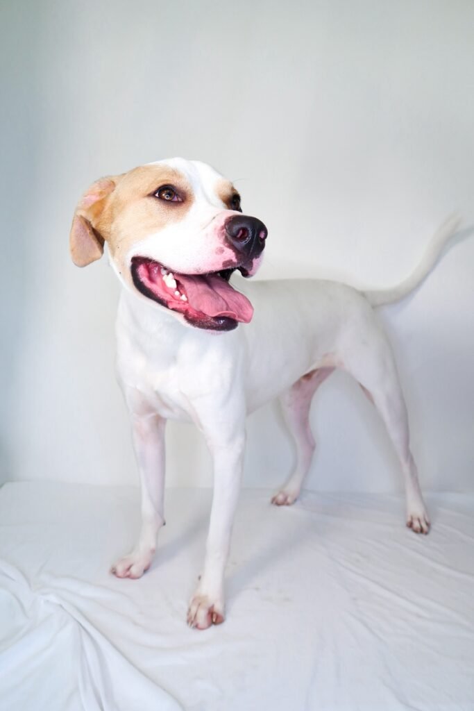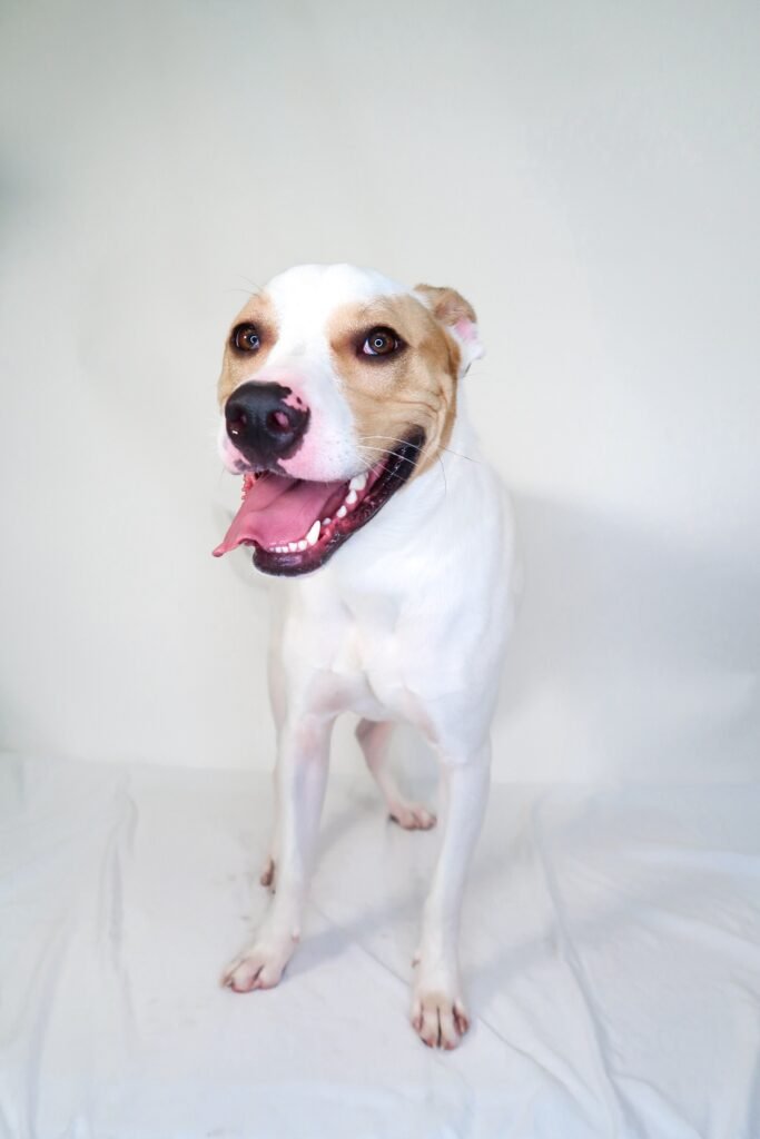 Gus is a sweet, friendly, goofy guy that just wants to be right by your side! He attaches to his humans quickly! He loves to play and will show his excitement by growling (totally happily) when he holds a toy. It’s the cutest thing! He’s GREAT with other dogs and loves to play and run until he can’t anymore! He loves being in the backyard with all his foster siblings by his side! He would do best in a home with other dogs.