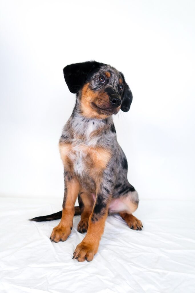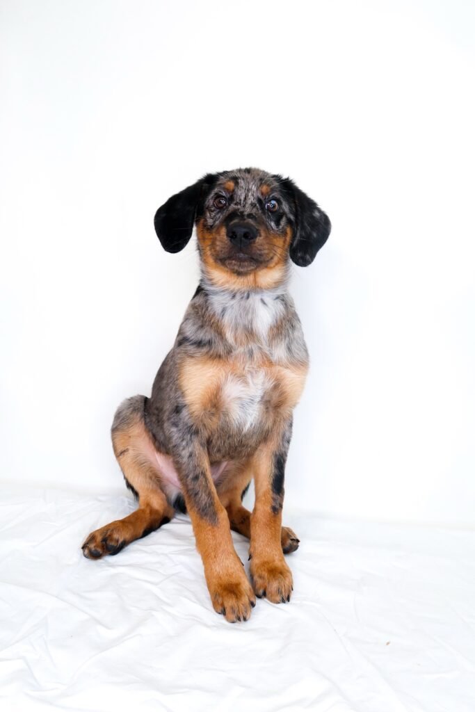 Kai is the most handsome brindle pup you ever did see! He loves to play with his toys, the tennis ball and rope are his favorites but even a stick will do – and is full of Aussie energy But, then he settles in quietly right next to his person when tired. He is as loyal as they come! His favorite nap spot is in the grass or at the foot of your chair. He does amazingly with dogs of all sizes and children of all ages. He is the first to run out and play in the morning, he absolutely loves to be outside.