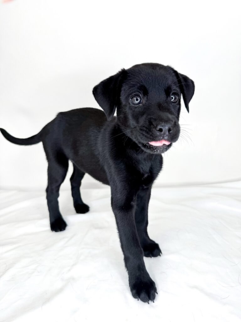 She sleeps through the night in her crate with her littermates like a little pro, and she’s working on potty training, already showing how smart and eager to please she is. Kappa’s the type of pup who wants to get it right and lights up with praise and affection!