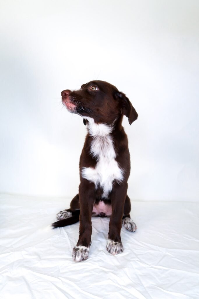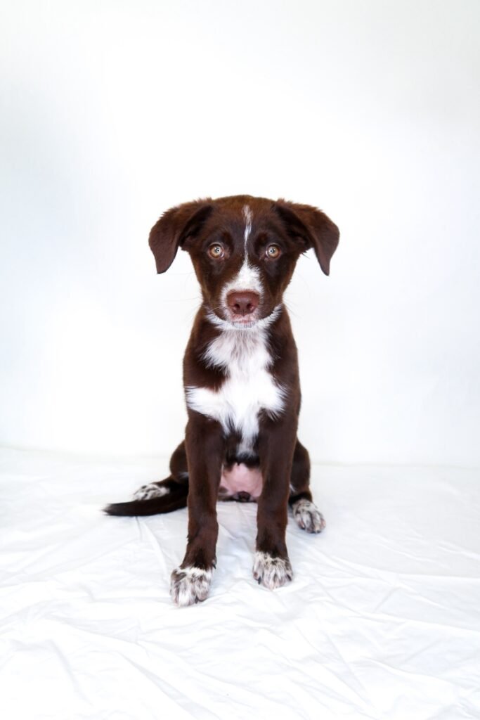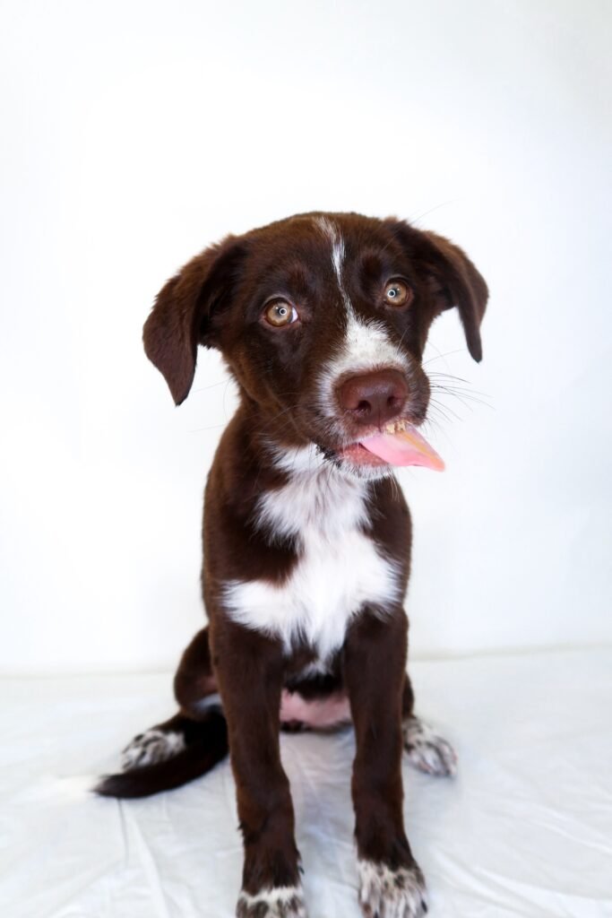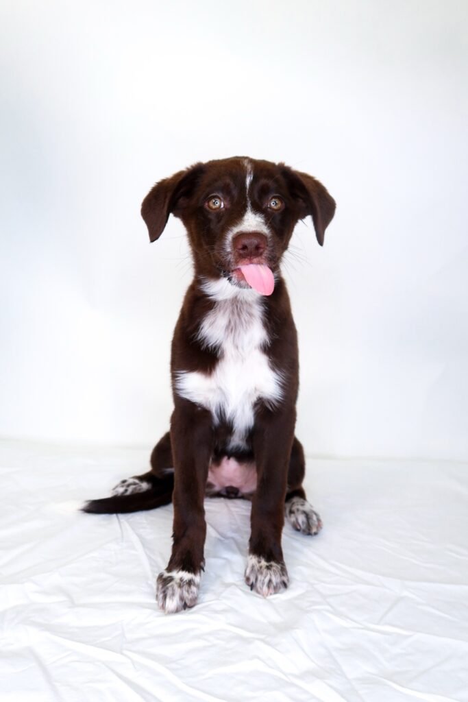 Paedyn is the cutest, sweetest pup, absolutely gorgeous! She loves to wrestle and play tug-of-war with her brother, and is full of fun Aussie energy. When tired, she prefers to rest quietly at your feet (lap if you let her) and watch the world go by. Her favorite thing is to give neck hugs – and she is just the best with morning cuddles! She does great with other puppies, dogs of all sizes and children. Her favorite dog in the foster house is a 90-pound giant whom she loves to play with all day long!