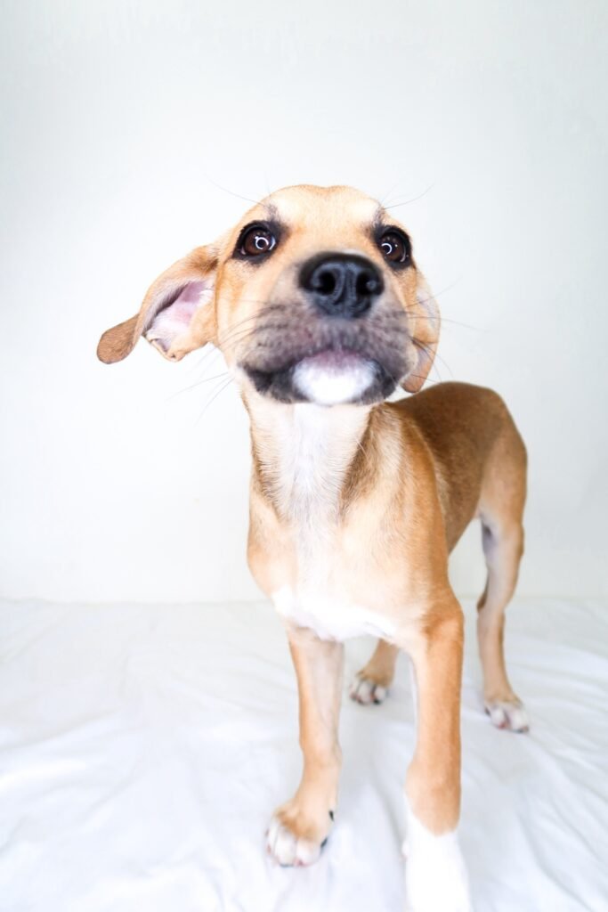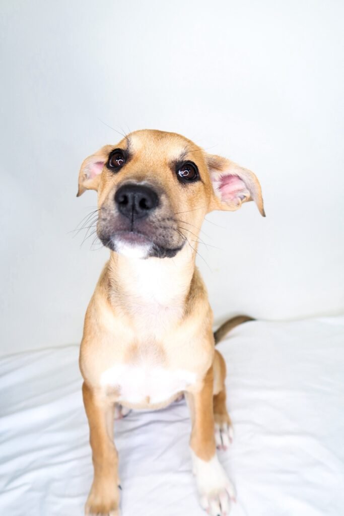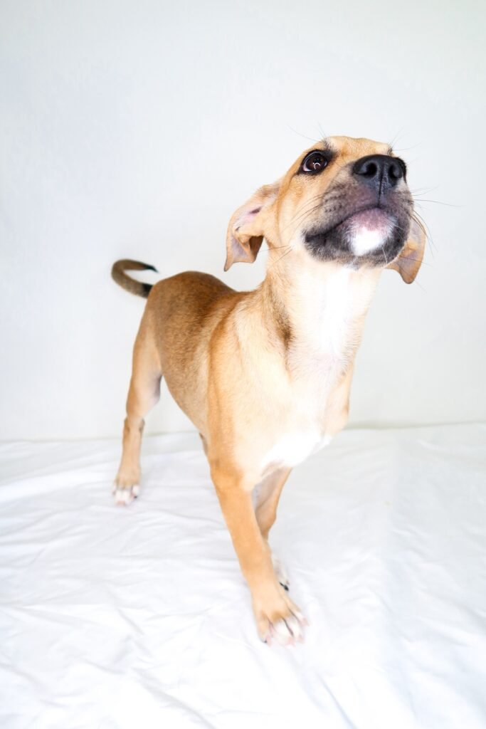 She’s been doing a stellar job sleeping through the night with her foster siblings, and is doing great potty training outside when let out frequently. She stays in a secured area inside while her foster works from home, but crated when they leaves the house. She’s a puppy with energy and would love a dog sibling to play with and keep her company! She does great with the older dogs in her foster home and is learning the ropes of the home easily from them.
