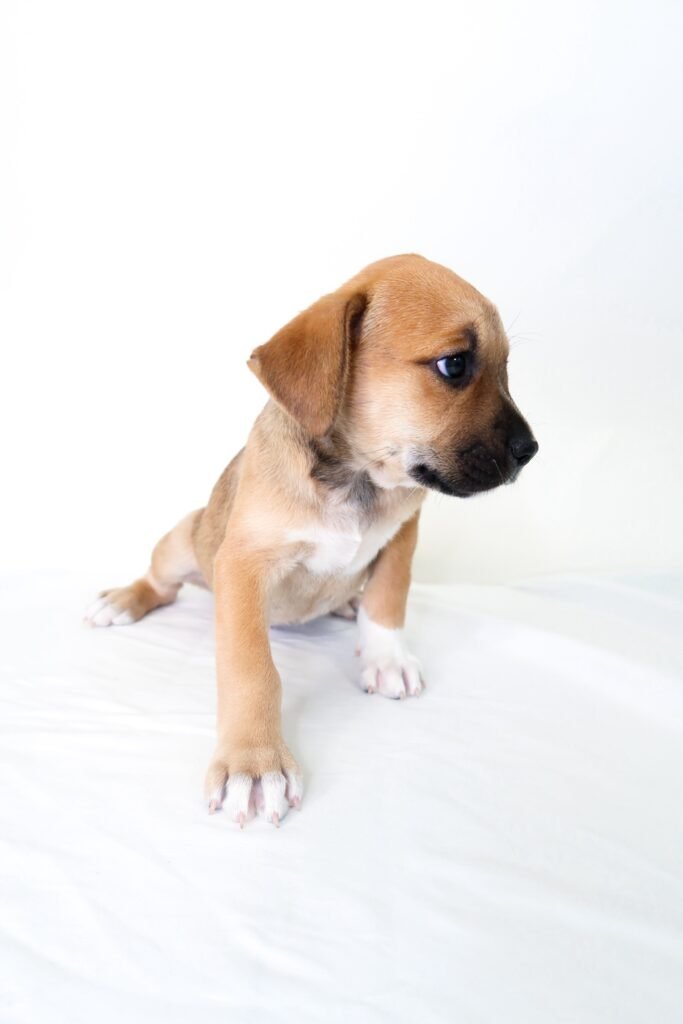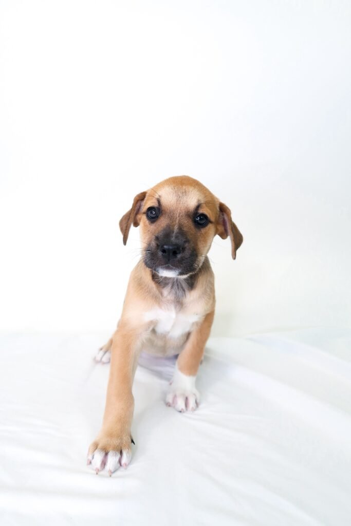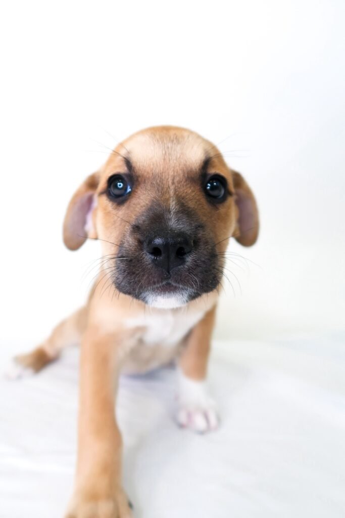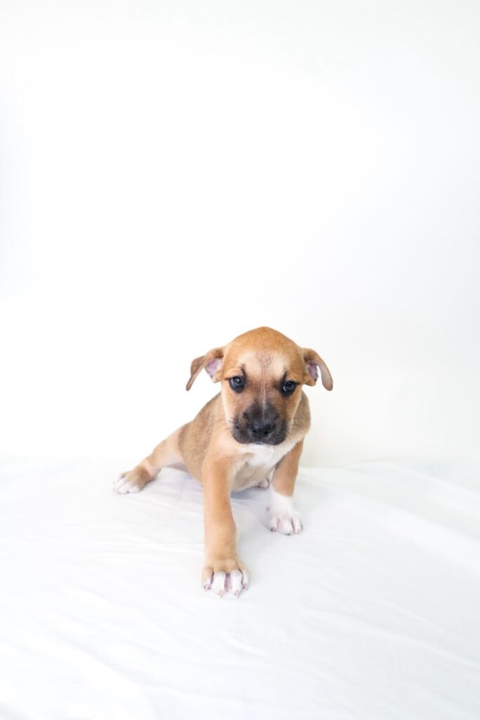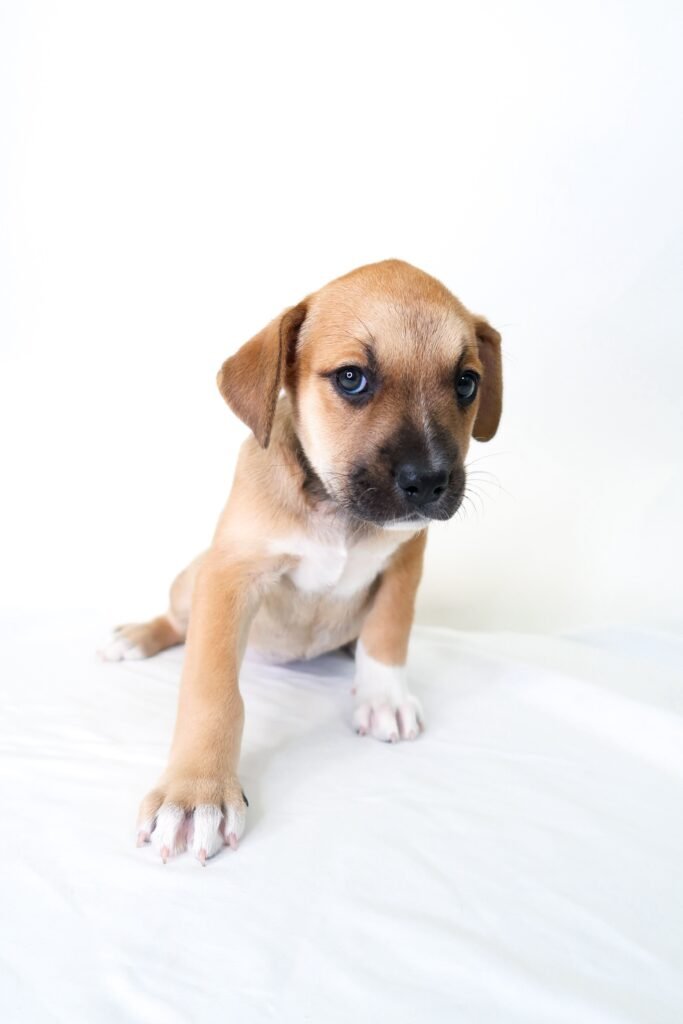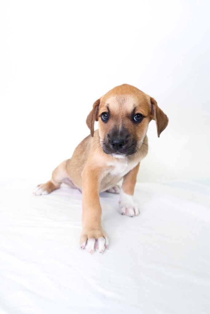 She might be a tiny bit less bouncy than her litter, but don’t let that fool you… Raven is always in on the action! Whether it’s toy time or cuddle time, she’s right there in the mix, wagging her tail and soaking up the fun.