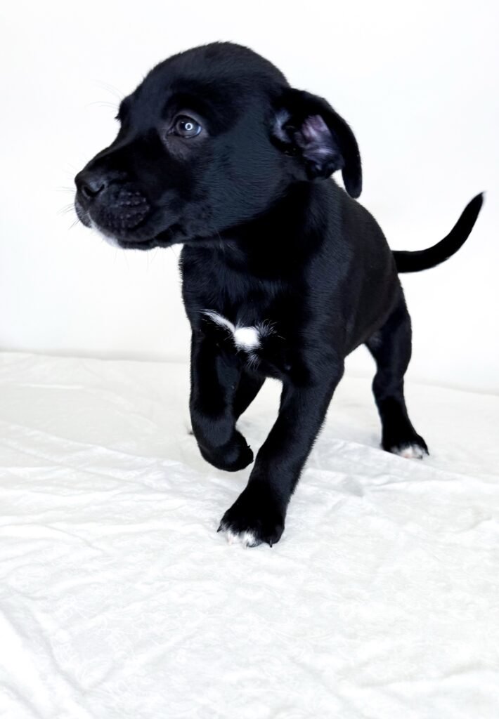 Rho is a sweet, shy, independent Black Lab mix. While her siblings are wrestling and zooming around the yard, Rho is often happiest hanging out with a toy on the porch or sneaking in some cuddle time with her favorite humans.