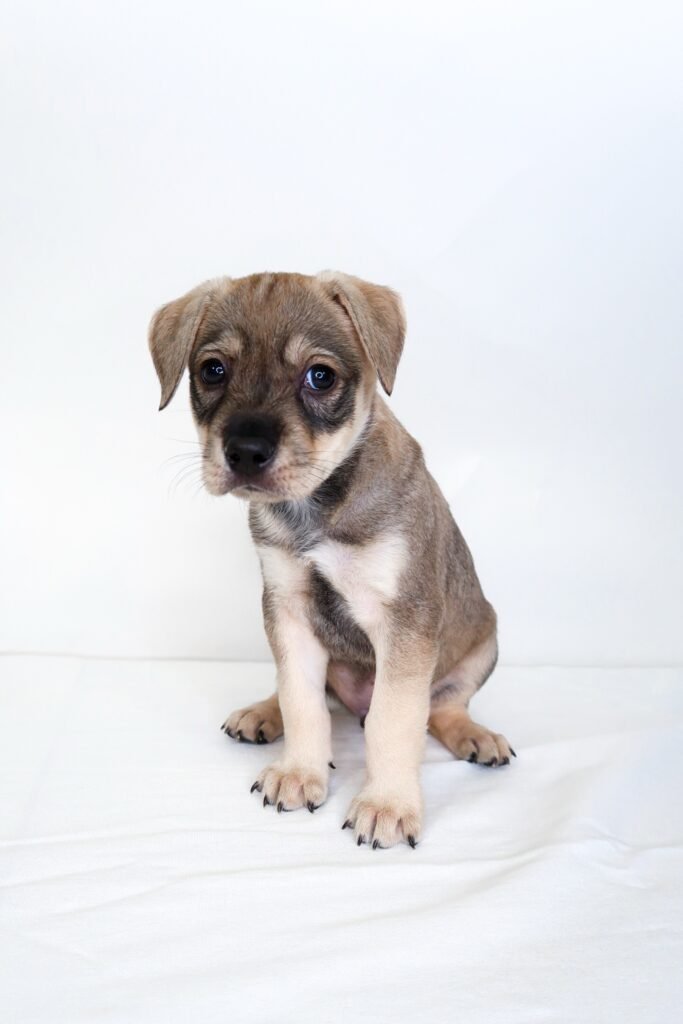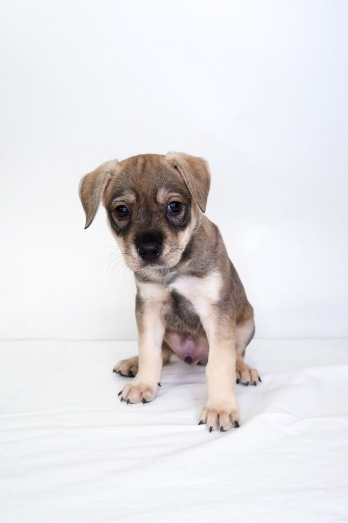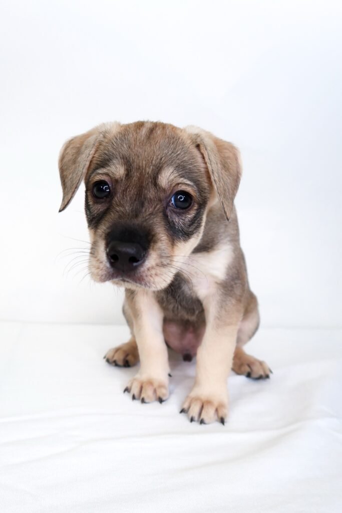 He’s already mastering his puppy pad skills and is showing off what a smart little cookie he is every day. He may start off a little shy, but once he trusts you, get ready for head scratches, couch cuddles, and a whole lot of love.
